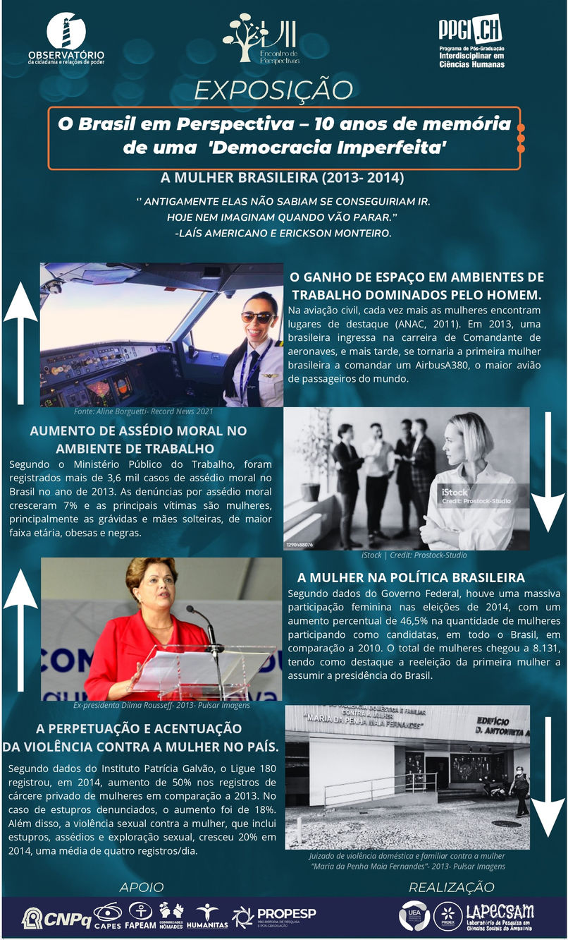 A exposição "O Brasil em Perspectiva - 10 anos de memória de uma 'Democracia Imperfeita' integra a programação do "VII Encontro de Perspectivas: cultura, cidadania, relações de poder e a vertigem da democracia", a ocorrer de 28 a 30 de novembro de 2023, nas dependências da Universidade do Estado do Amazonas.
